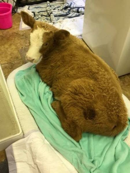 Эту тёлочку бросила мать, и её нашли дрожащей во время наводнения после урагана Харви в юго-восточном Техасе.