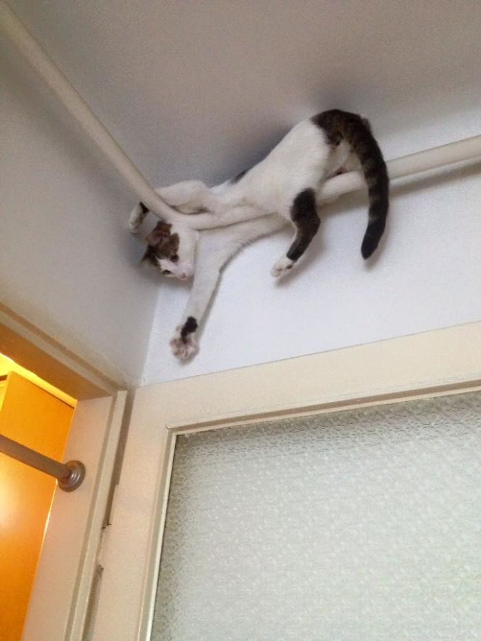 Моему коту Карме нравится высота. Он не застрял, просто висит…