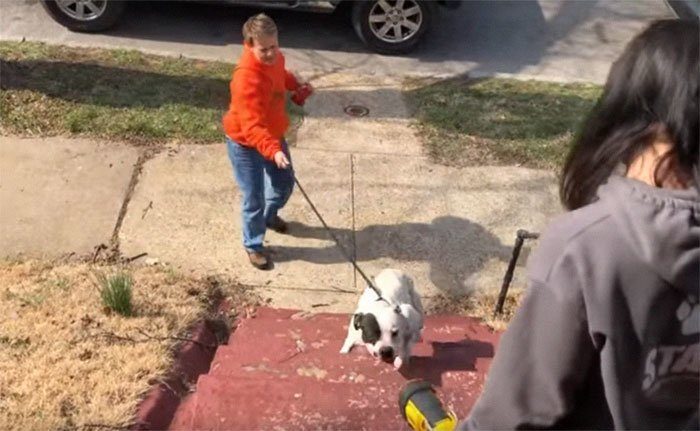 Дружелюбная самка питбуля так рвалась к людям, что чуть было не передавила шею цепью