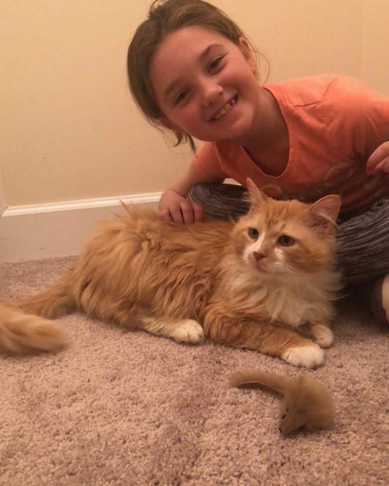 История кота быстро распространялась. Так она попалась на глаза будущей хозяйке Тоби — Мишель Пакетт из Роли, Северная Каролина (США).