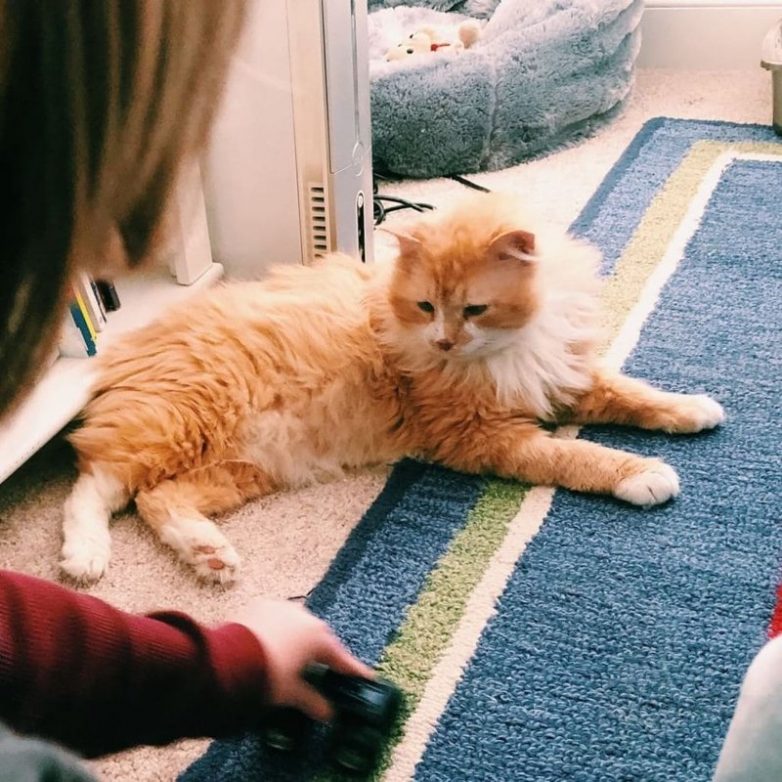 Кот обрёл новую семью в прошлую пятницу и довольно быстро освоился в новом доме