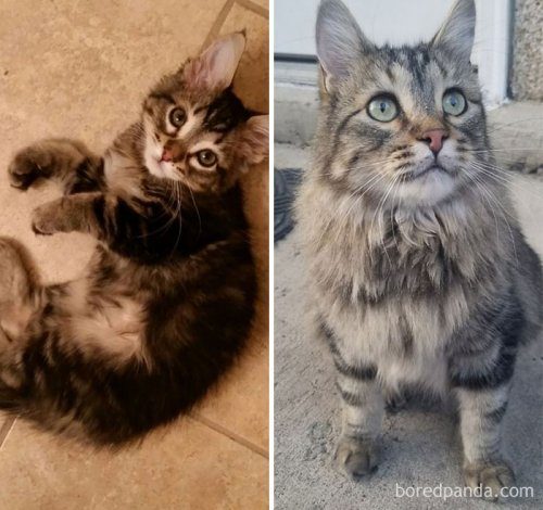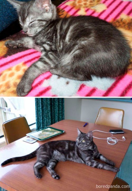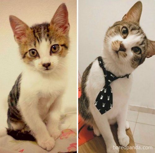 Предлагаем вашему вниманию очаровательную коллекцию фотографий из серии «тогда и сейчас», какие есть почти у каждого владельца домашнего животного. Ведь как интересно наблюдать за изменением внешности своего любимого питомца, сравнивая его фотографии в разном возрасте!