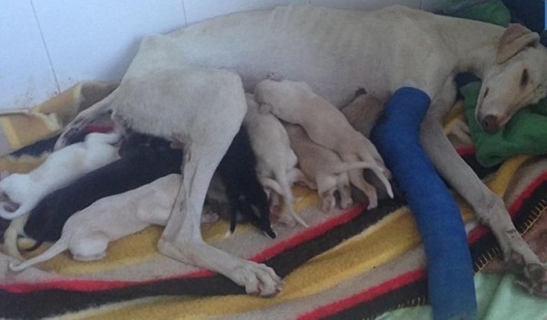 Нужно отметить, что все детки были абсолютно здоровыми, у них даже не было вшей и блох, столь типичных для любых уличных псов! Вероятнее всего, кто-то выкинул беременную бедняжку прямо на улицу, считают врачи ветеринарной клиники. А потом или по неосторожности (собака явно не была приспособлена для жизни вне дома), или по вине каких-то садистов животное «отхватило» в придачу ещё и сломанные лапы. То, что её и её потомство удалось спасти – настоящее везение, уверены доктора.