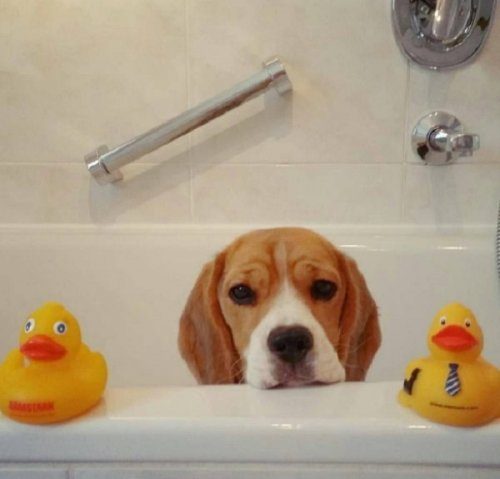 Взгляните на этих прелестных собак, которые с удовольствием готовы понежиться в ванной или поиграть с любимыми игрушечными уточками: