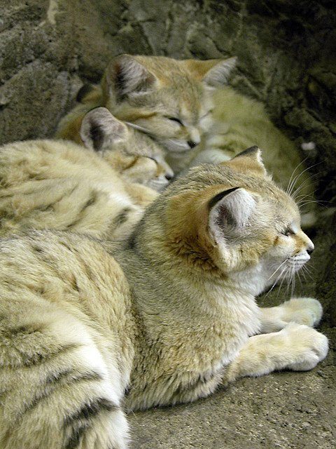 Так же, как и ее очевидный враг (мы!), песчаная кошка не находится на вершине своей собственной пищевой цепи. Она располагается раньше волков и даже иногда змей и крупных хищных птиц. Тем не менее, эти кошки — бесстрашные существа, и не боятся людей, когда вступают с нами в контакт.