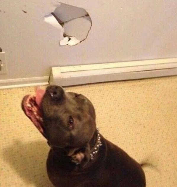 16. Пес моего сводного брата на радостях слишком быстро спустился с лестницы и не успел остановиться перед стенкой