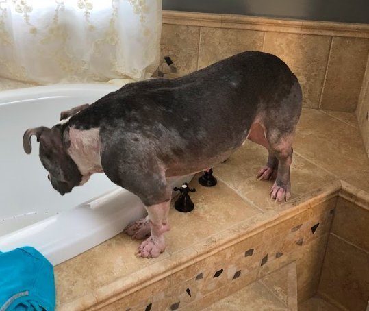 Псу были показаны ванны с лечебным шампунем, и он даже не сопротивлялся, будто понимал, что ему станет лучше