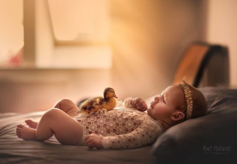 Чтобы преодолеть депрессию на фоне смерти любимца, фотограф начала снимать младенцев с другими животными — это помогло ей справиться с потерей.
