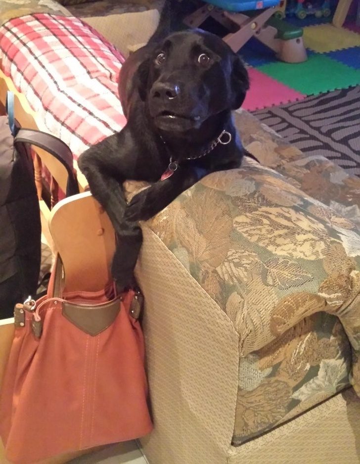 «Моя собака устроила бардак и теперь расслабленно сидит и наблюдает, как я убираю. Вы только посмотрите, как она положила свою лапу!»