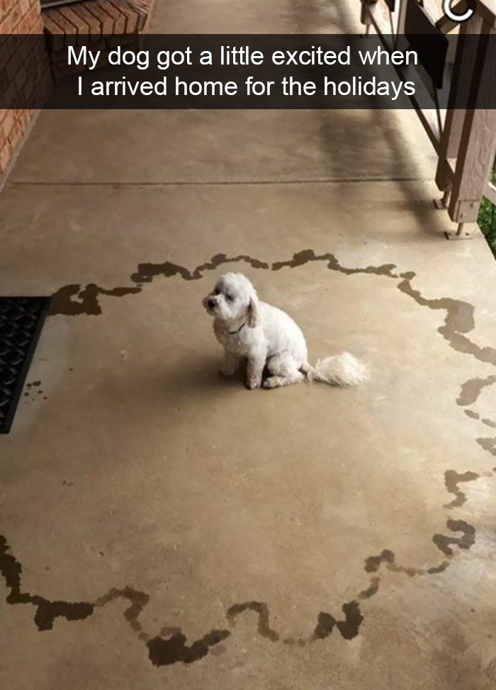Пес устроил шум у входной двери, а когда мы пошли проверить, обежал через гостиную и стащил пиццу со стола