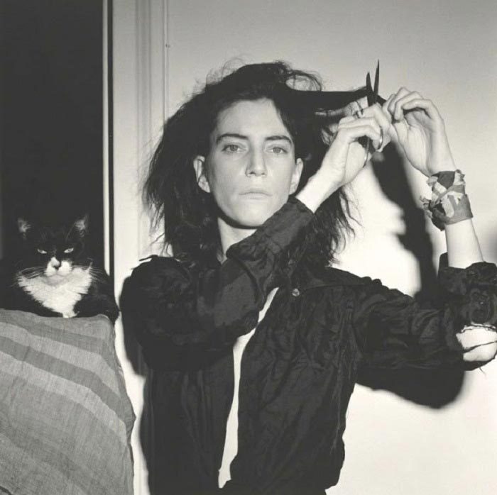 Американская певица и «крестная мама панк-рока» Патти Смит со своим черно-белым котом-«стилистом»