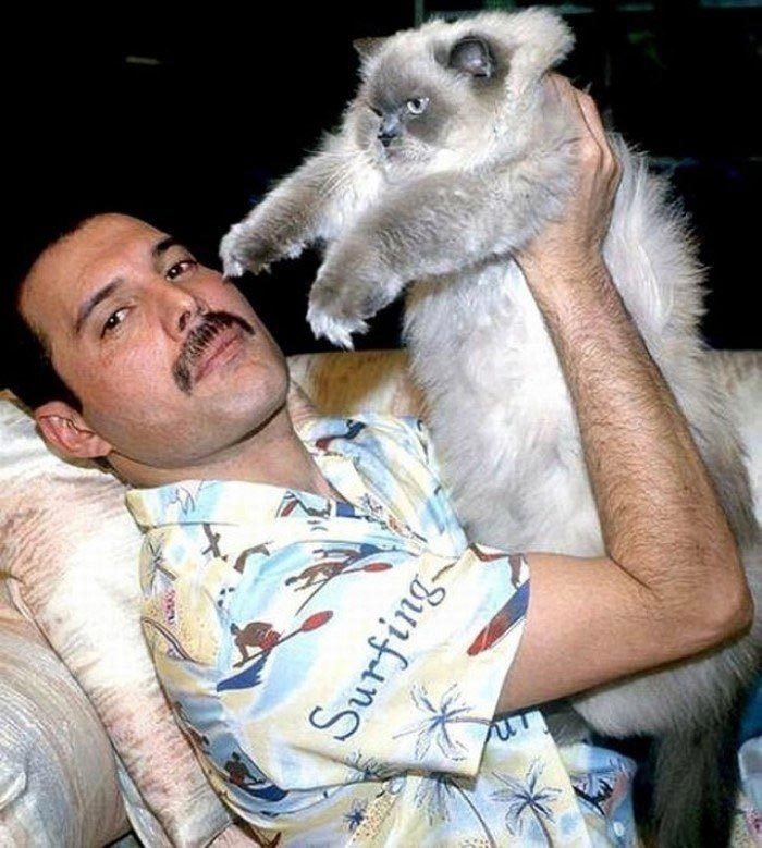 Фронтмен британской группы «Queen» Фредди Меркьюри с одним из любимых котов по кличке Оскар