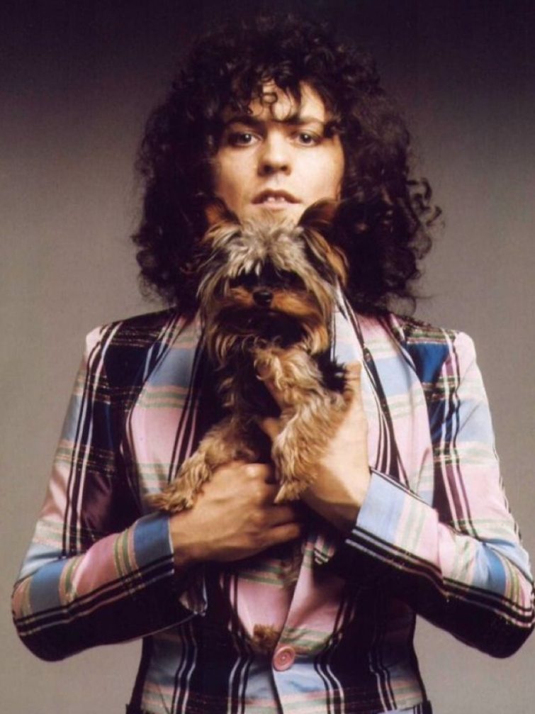 Лидер британской группы «T. Rex» Марк Болан со своим пушистым четвероногим другом