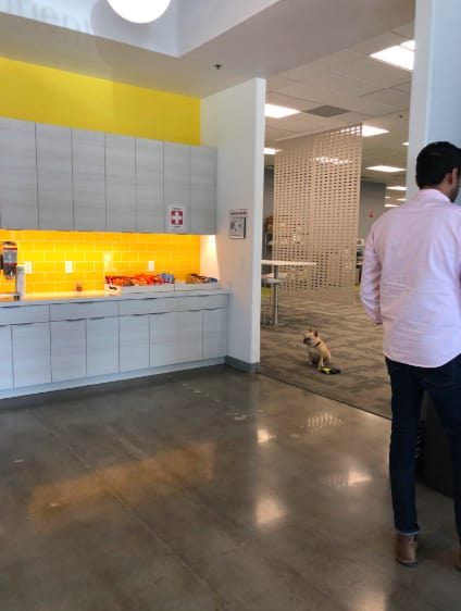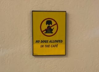 Как написала в твитте сотрудница кафе, хозяйке Макса нужно было сделать дела в своем кабинете и забрать напиток из холодильника на кухне. Собакам туда нельзя и понимающий бульдожка спокойно сидит на месте. Не привязанный, сам по себе. Послушный.