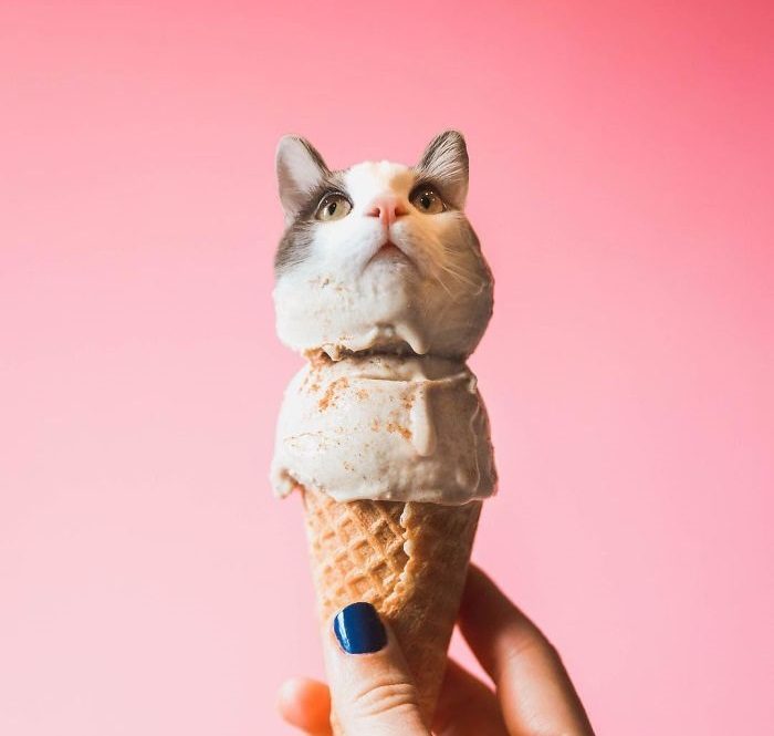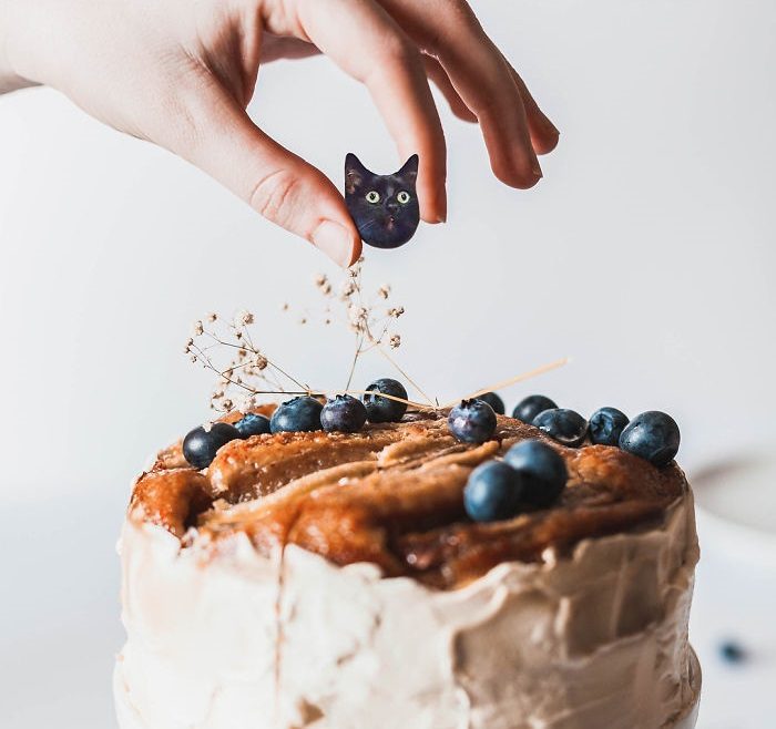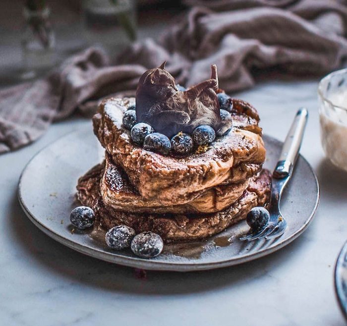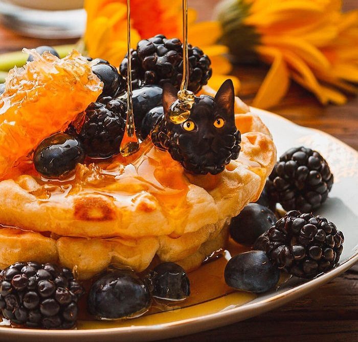 Блогерша Ксения Змановская из России ведёт в инстаграме страницу cats_in_food и уверена, что её удалось соединить вместе две лучшие вещи – кошек и еду.