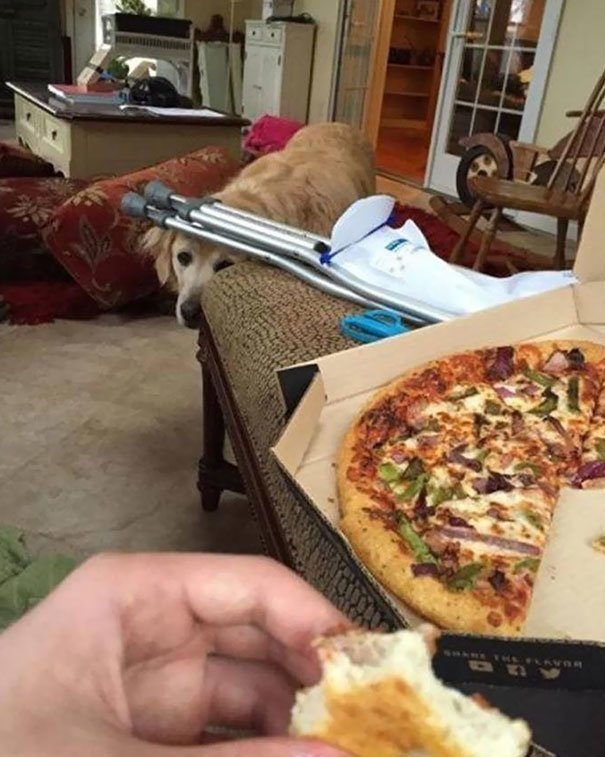 Когда собаке велят перестать глазеть на хозяина, принимающего пищу, она отворачивается. Ну, почти