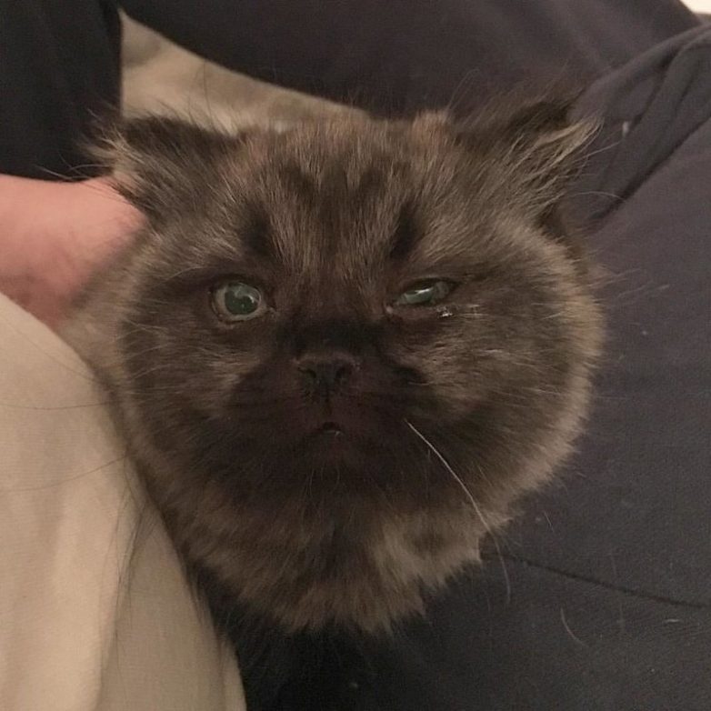 А на видео видно, какая у него странная походка! Кажется, что этот котенок появился на свет от персидской кошки и манчкина, у которого короткие передние лапы. Ветеринар внимательно осмотрел его и решил, что такая необычная внешность у животного из-за какой-то генетической мутации.