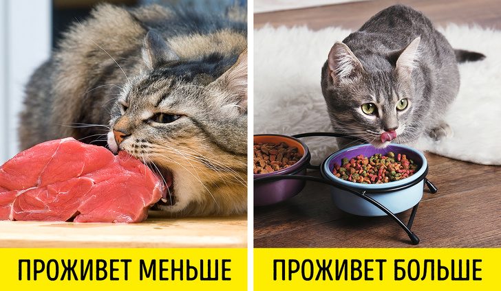 Искусственный корм вреден для всех. Мясо, рыба и овощи никогда не вредили ни собакам, ни кошкам, а при достаточном уходе и наличии движений они живут долго.
