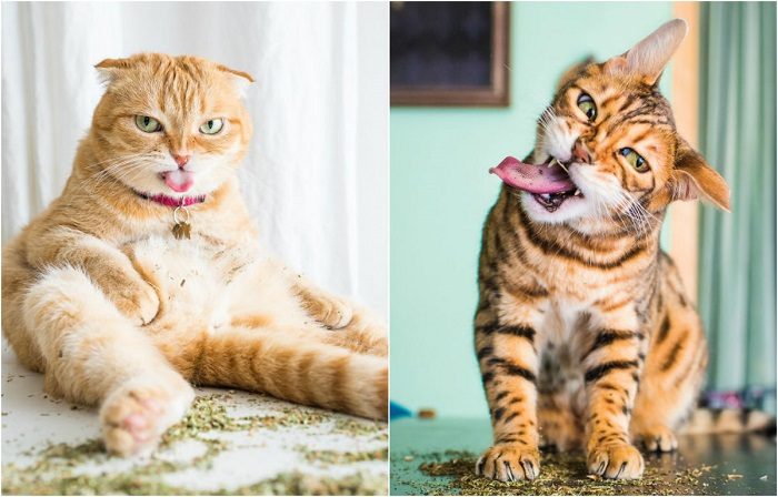 Вот поэтому и не могут пушистики отказать себе в валерьянке. Фотограф Эндрю Марттила запечатлел кошек, которые решили пожевать травку — получился целый ураган кошачьих эмоций.