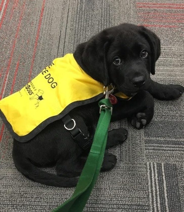 Этот щенок — будущая собака-поводырь. Это его первый тренинг