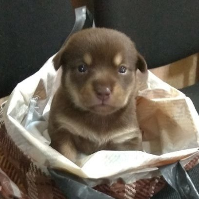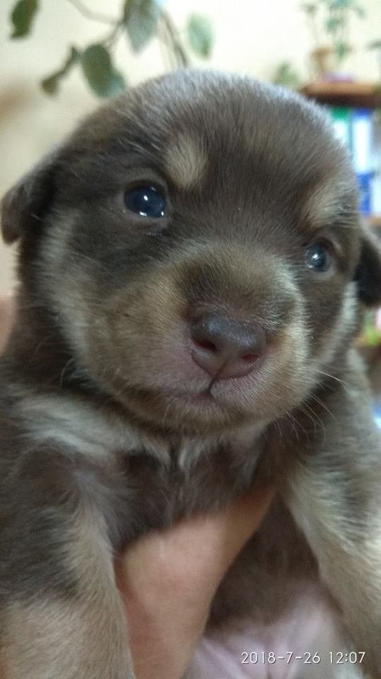 Внутри сидел и тихонько подвывал крошечный коричневый щенок. Милый доверчивый, очень голодный.