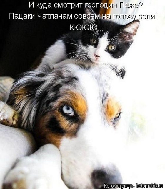 Забавная дружба между животными, котик, который не простил хозяину «банные процедуры», собака на охране и другие котоматрицы в продолжении поста.