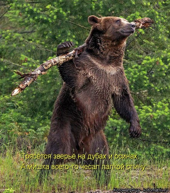 В сегодняшней подборке вы увидите вороватого кота, дружбу между котом и собакой, медведя, который любит чесать палкой спину, и иного других позитивных котоматриц.
