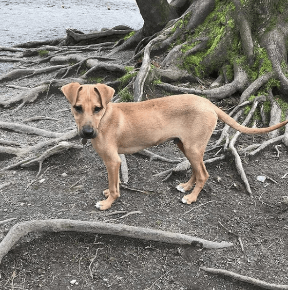 Примерно в этот же момент Элли услышала жалобный писк. Оглянувшись, она увидела небольшого рыжего щенка, который выпрашивал у неё покушать и, судя по внешнему виду, был основательно голоден. Он выглядел ужасно: сильно отощавшим, грязным и больным. Впоследствии выяснилось, что ему всего три месяца. И тут школьница загорелась идеей взять пса с собой в Америку и спасти его!