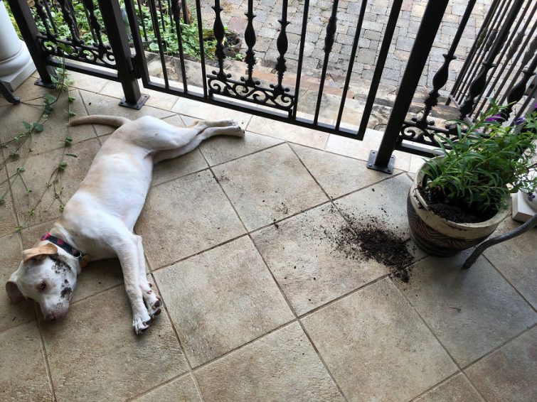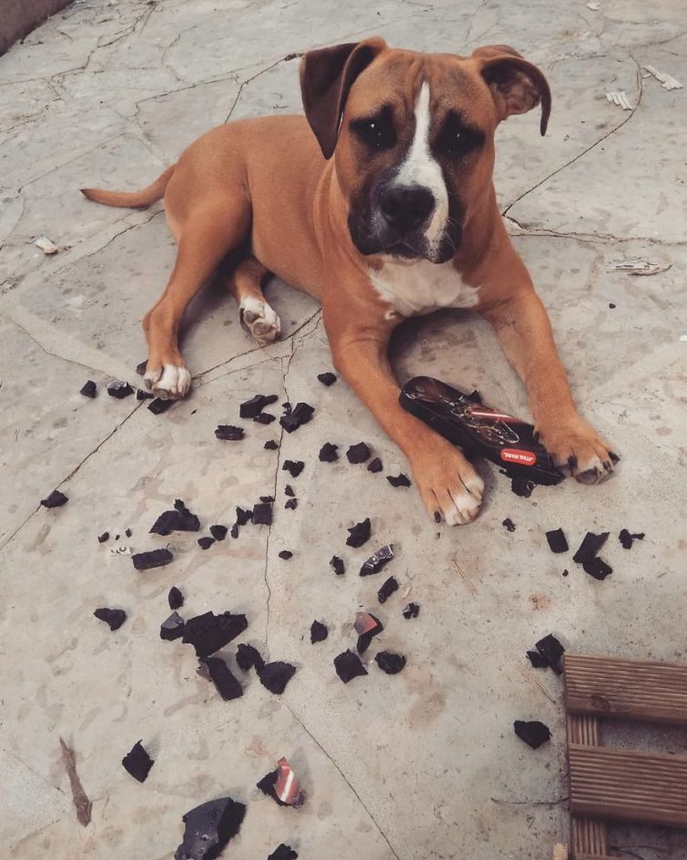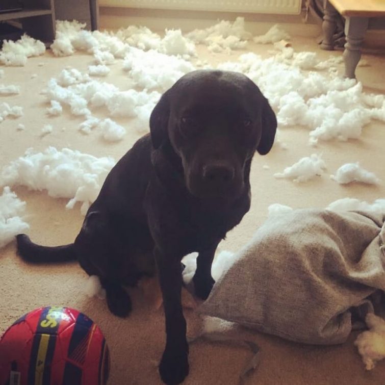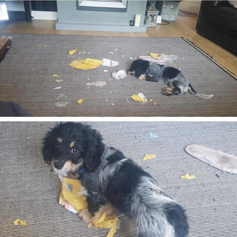Но иногда бывает так, что пёс не встречает вас у двери дома, а сидит где-то внутри рядом с разорванной подушкой в окружении перьев или возле разорванной пары обуви. После того, как ваш любимец осознает то, что он сделал, он, скорее всего, воспроизведет то, что мы называем «виноватым лицом»: он сожмётся в каком-нибудь уголке, будет смотреть на вас исподлобья, и, возможно, прижмёт уши. Затем вы смягчитесь и простите его в очередной раз. Кто сможет сопротивляться этому лицу?