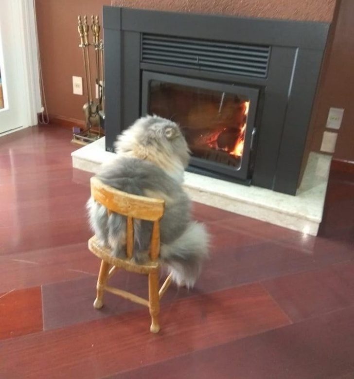 Этот кот прямо как человек, который любит провести вечер у камина