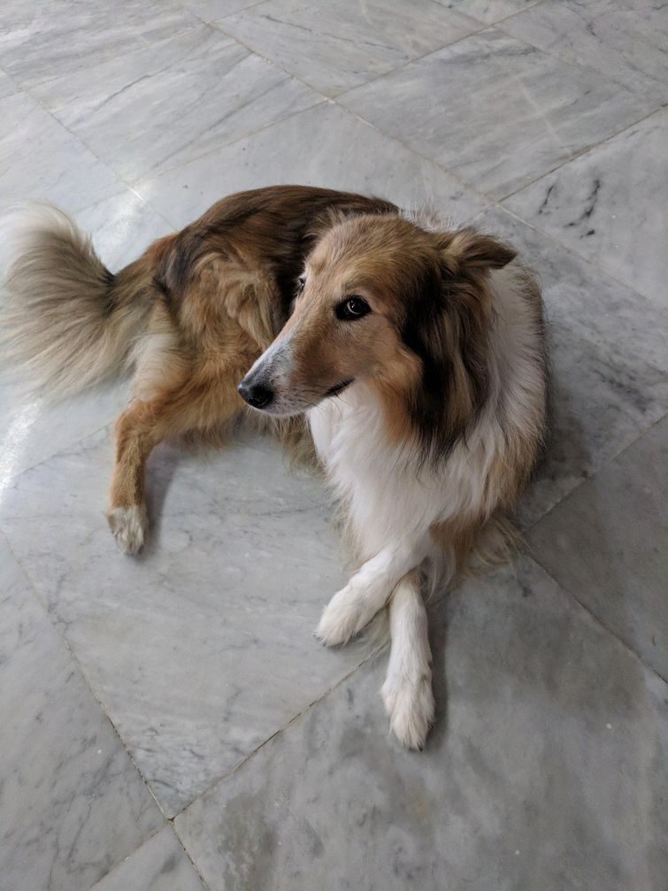 Когда она вернулась домой, то увидела такую картину ↑. Собака лежала с классическим видом а-ля «ну и где ты была?»