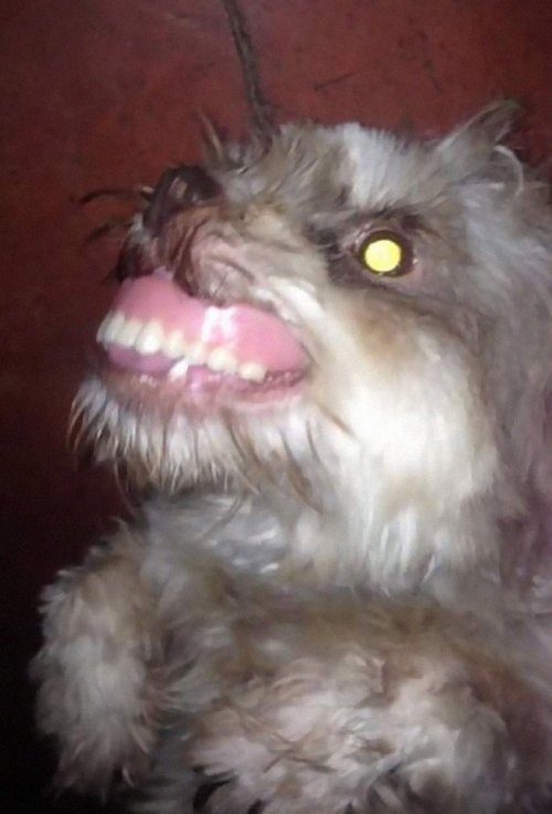 Отец Юнис носит зубные протезы. Однажды он вынул их изо рта перед сном, забыв, что в доме есть пушистая шутница. Как вы уже наверняка догадались, наткнувшись на новую «игрушку», Мэгги взяла на себя задачу выяснить, как это работает.