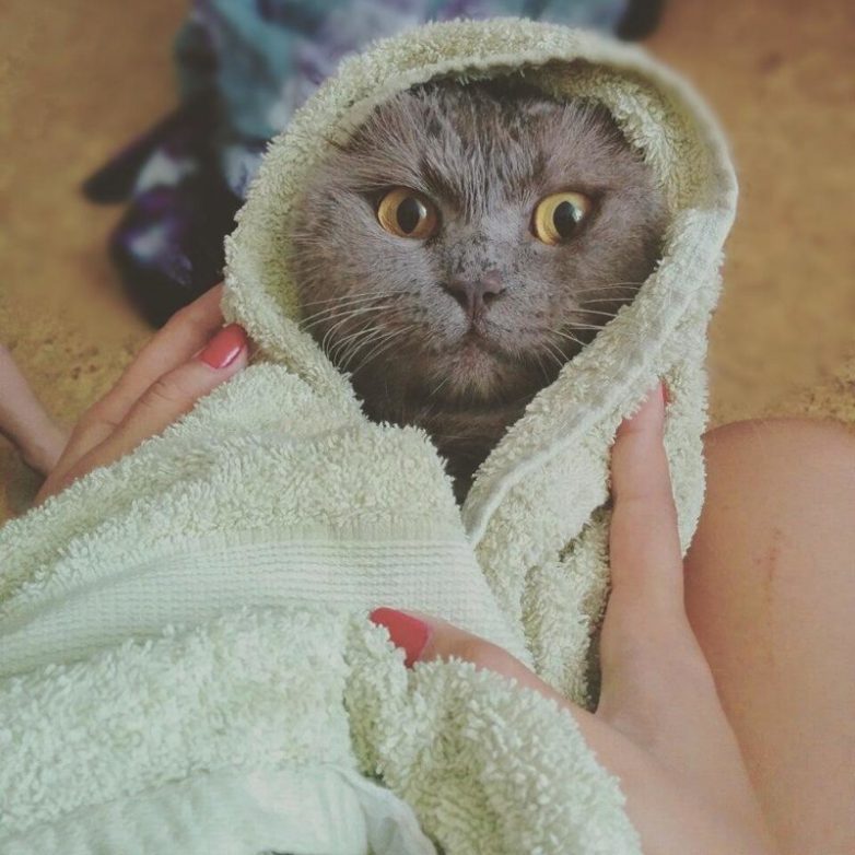 На страничке Инстаграм «мытый кот» владельцы делятся фото своих питомцев, принимающих водные процедуры. Там есть на что посмотреть!