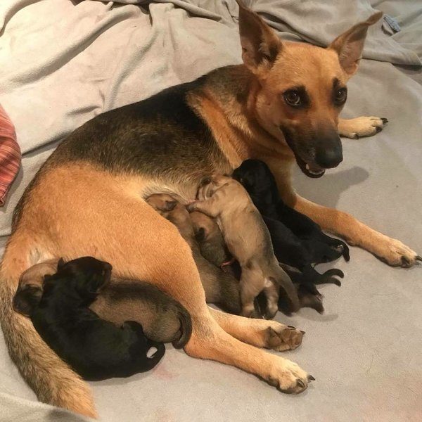 Здесь Мария и ощенилась меньше, чем через неделю. На свет она произвела целых семь прекрасных щенков. Крохи хорошо кушают и быстро растут. Для них Каппеллути уже начала поиск подходящих семей.