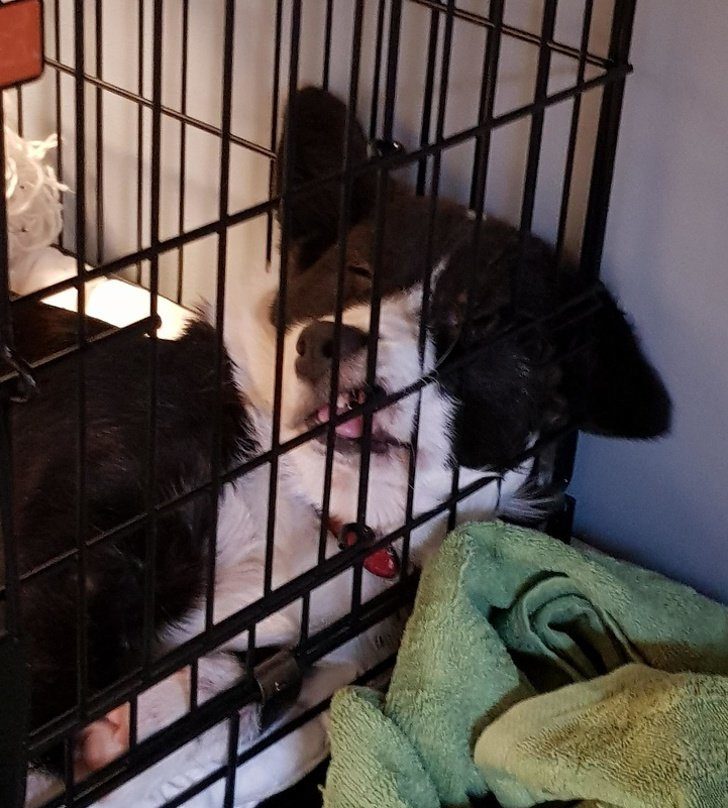 Этому псу плевать, что он сидит в клетке, он может расслабиться даже там