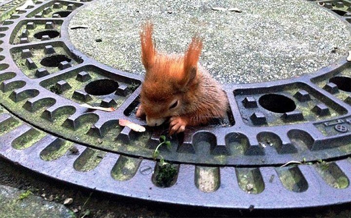 В Мюнхене недавно прошла спецоперация по спасению… белки. Неизвестно, как она умудрилась застрять в крышке канализационного люка.Сначала спасатели пытались вытащить зверька, щедро смазав его оливковым маслом. Но план потерпел неудачу — белка оказалась слишком упитанной. Наконец команда решила поднять крышку, и — удача! — зверек выскользнул с другой стороны.