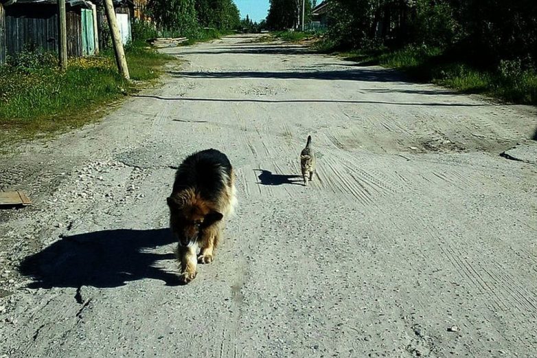 Говорят, что животные из «враждебных кланов» — кошки и собаки, не могут ужиться друг другом. Однако это неправда. И история овчарки Тома и кота Тоши, которые живут в городке Печора, тому подтверждение.