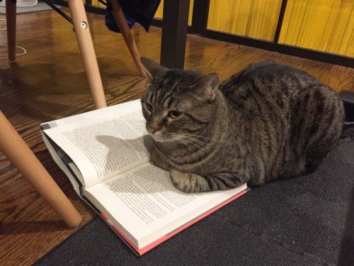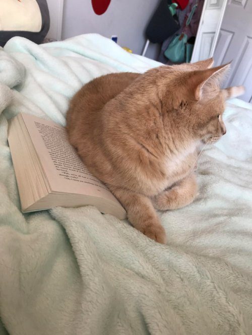 В какой бы семье ни появилась кошка, она обязательно будет мешать своему хозяину читать. Может, они думают, что чем больше книг прочтёт человек, тем сложнее будет его контролировать, когда они, наконец, захватят мир?..