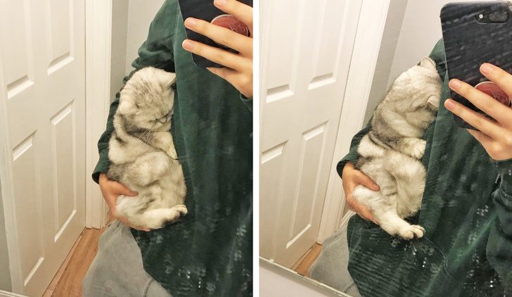 Это Пиро, он любит вот так сидеть на руках и засыпать