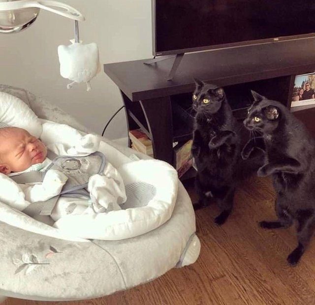 Самый отпадный, на уровне стресса, вид у кошек узреших грудного младенца!