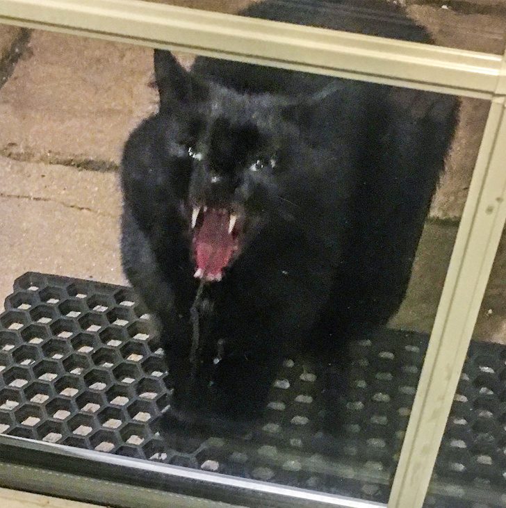 «Этот кот приходит каждый вечер к моему дому и орет на моих кошек, пока они едят. Он выглядит сытым, и у него есть свой дом»