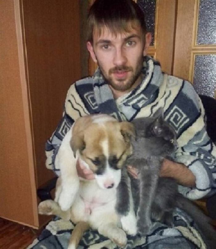 Знакомьтесь, этого парня на фото зовут Сергей. Ему 23 года, он живёт в городе Пермь. Сергей – единственный среди похожих, кто решил помочь маленькому несчастному щеночку, которого он увидел на улице. Бывшие хозяева – судя по всему, люди нестойких моральных принципов – привязали маленькое животное к камню да так и бросили неподалёку от проезжей части.
