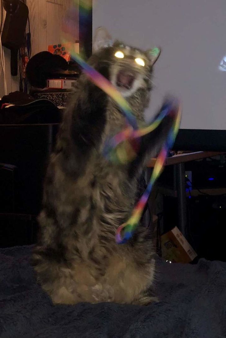 Кошки способны гениально сыграть как приступ сумасшествия...