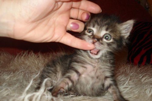 Котёнок был ещё слеп и очень слаб, за ним нужен был уход и забота. Только недели спустя, после тщательного ухода и кормления каждые 2-3 часа, малышка (а это была девочка) начала открывать глаза. И первыми, кого она увидела, были люди. Её назвали Фимой, и теперь она — настоящий член семьи.