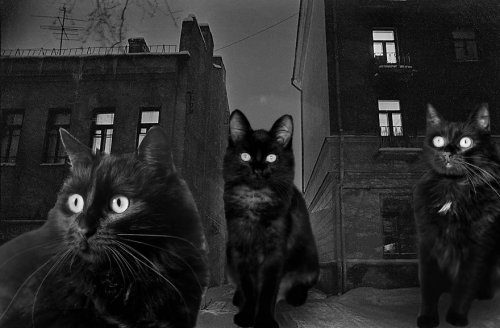 Теплота старых советских фотографий, на которых изображены коты и кошки, ищущие новый дом и любящих хозяев, становится лейтмотивом фотоколлажей Ольги Собениной.