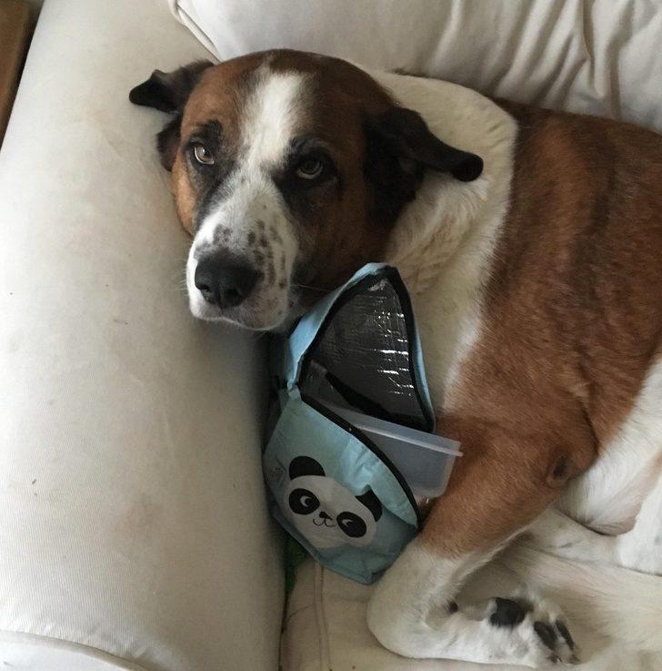 Он упорно делает вид, что не ел школьный обед своей маленькой хозяйки. Снова