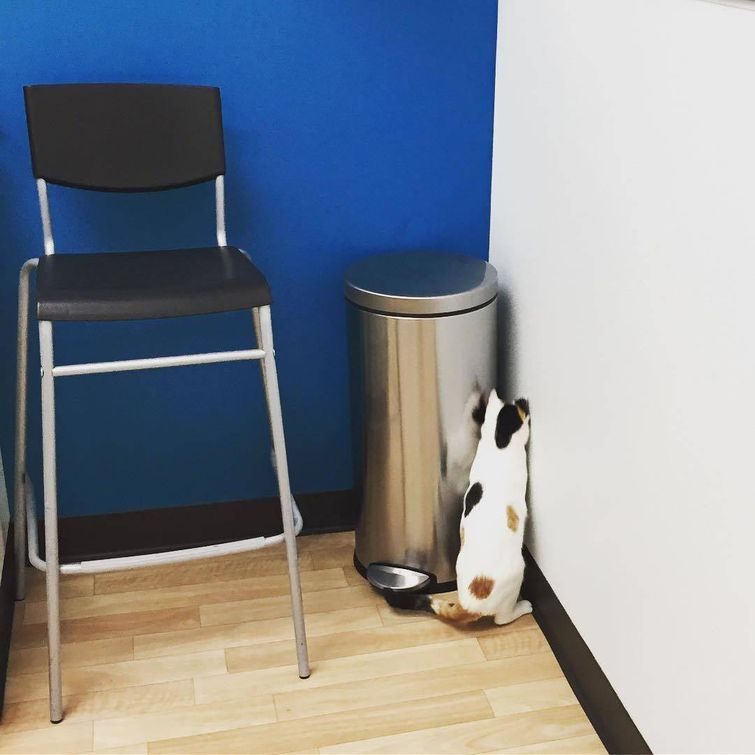 Кто бы не хотел уткнуться лицом в угол и сделать вид, что он где-нибудь в другом месте? В этом люди с домашними животными очень похожи, с одной лишь разницей, что у наших питомцев это выглядит гораздо забавнее.