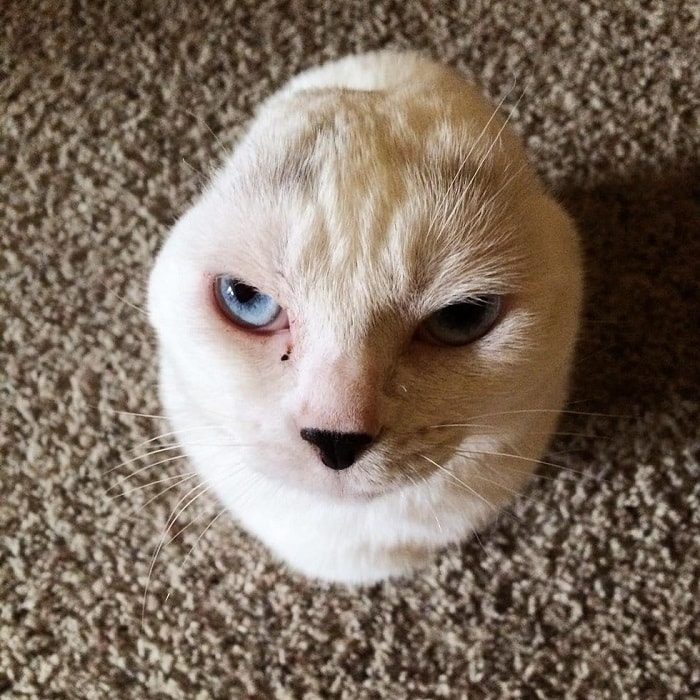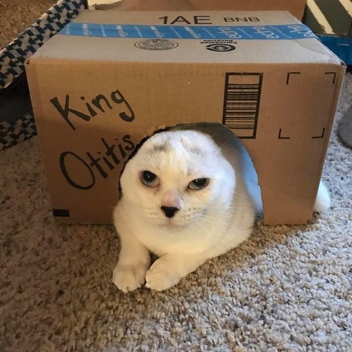 У котика развилась киста на обоих ушках. Предыдущий хозяин вынужден был отдать животное, потому что не мог оплатить его лечение. Этим занялись сотрудники приюта. Ветеринары провели операцию, в результате которой животному пришлось ампутировать ушные раковины. Отис навсегда остался глухим. Такой «дефективный» питомец никому не был нужен. А вот девушку он заинтересовал.