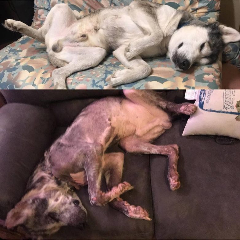Спустя некоторое время пёс стал обрастать шерстью, а от ран не осталось и следа