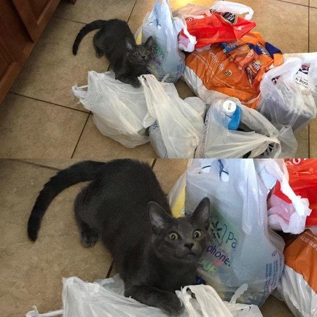 Кошку вряд ли когда-то станет мучить чувство вины. Если она что-то уронила, значит так было нужно!